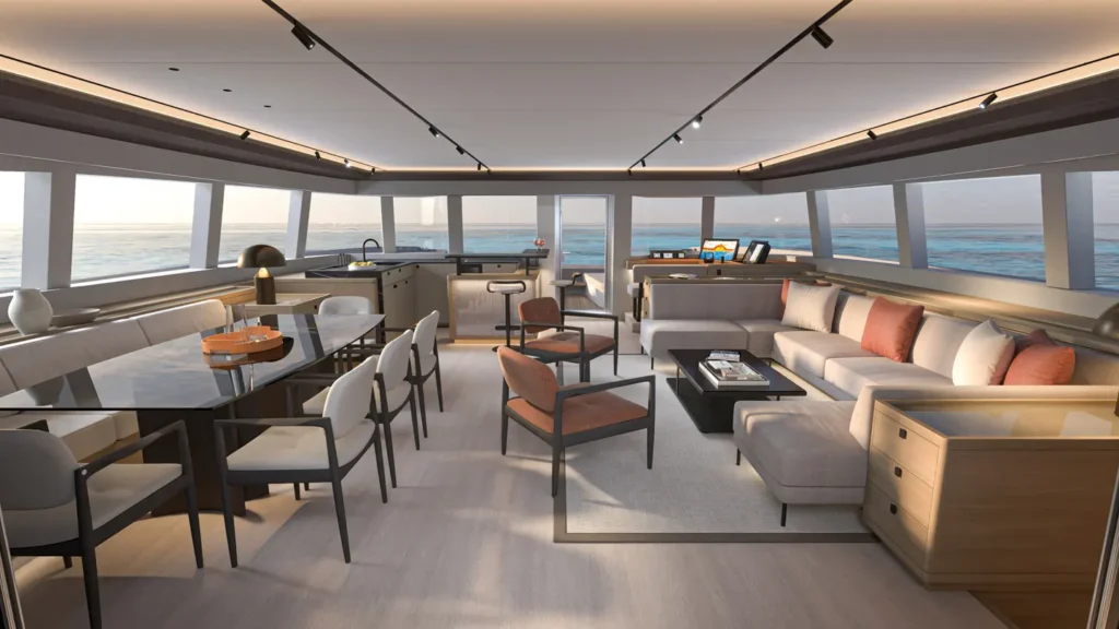 Each detail is designed to be personalized. The EIGHTY 3 features the spirit of a motor yacht with the distinctive personality of a Lagoon, with bespoke choices for furnishings, upholstery, and accessories.
