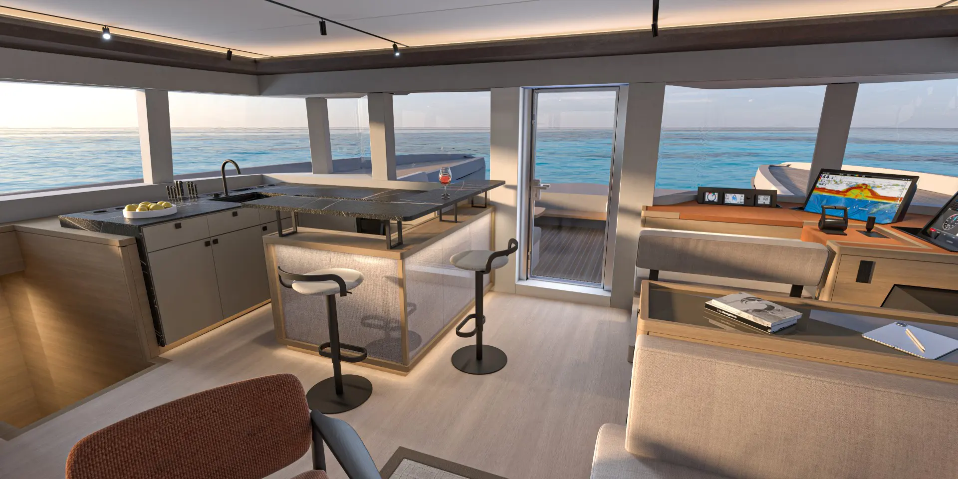 Each detail is designed to be personalized. The EIGHTY 3 features the spirit of a motor yacht with the distinctive personality of a Lagoon, with bespoke choices for furnishings, upholstery, and accessories.