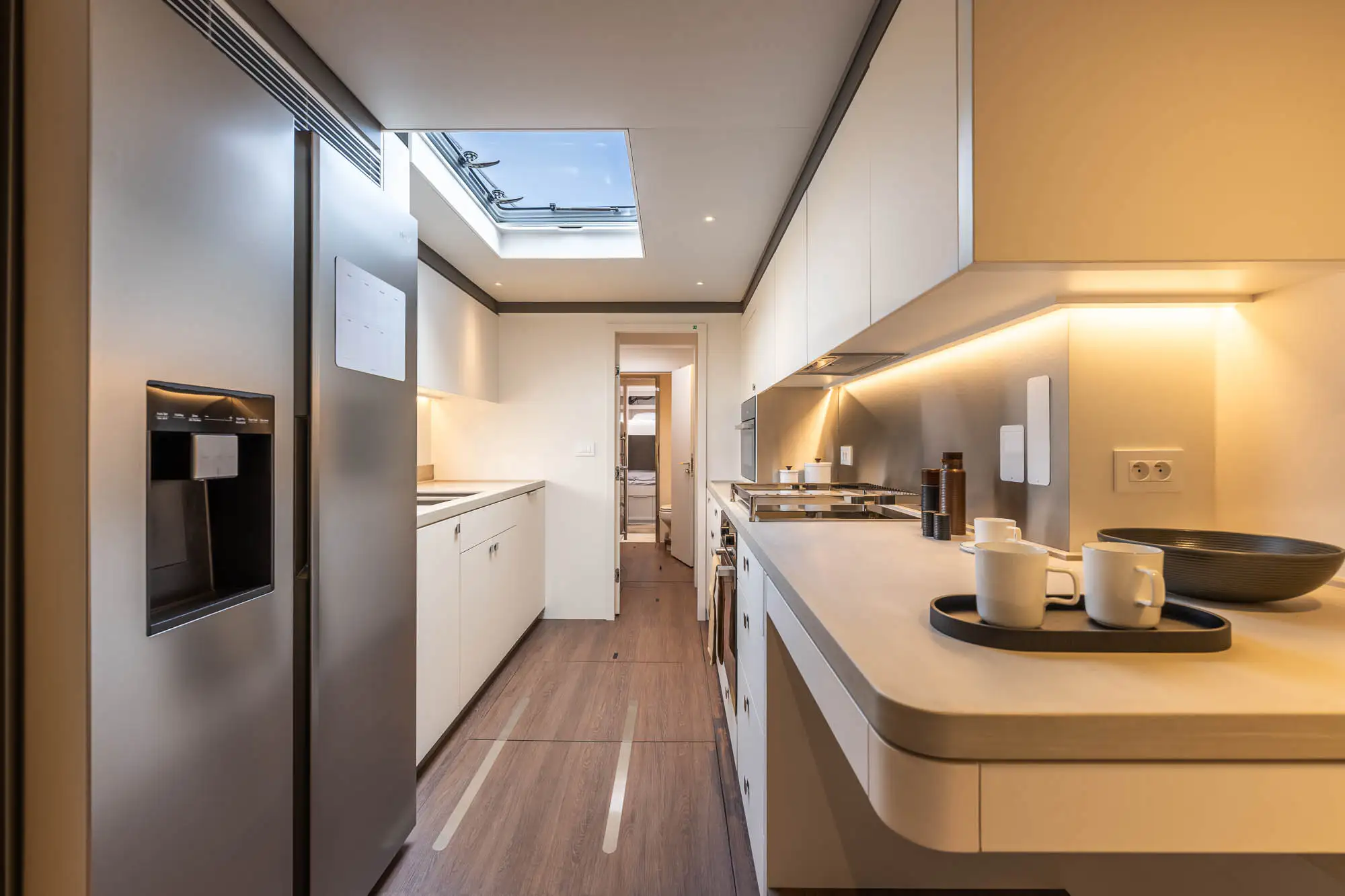 Inspirado en los códigos arquitectónicos contemporáneos, cada espacio de vida a bordo le invita a disfrutar plenamente de la luz y de las impresionantes vistas a 360° sobre el océano.
