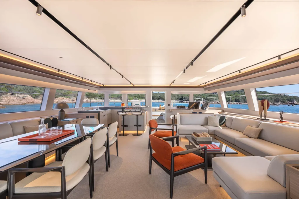 Cada detalle está diseñado para ser personalizable. El EIGHTY 3 encarna el espíritu del yate a motor con la personalidad Lagoon, gracias a las opciones personalizadas en cuanto a mobiliario, tapicería y accesorios.