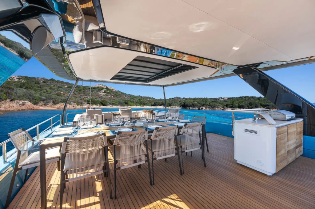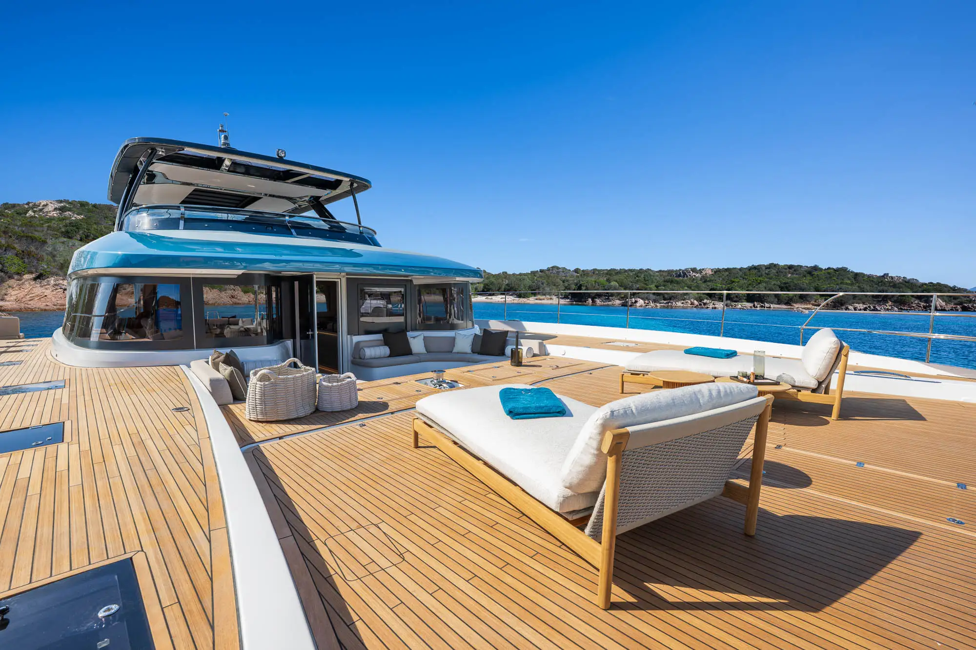 Su diseño promete 300 m² de espacios exteriores dedicados a la relajación, incluyendo una plataforma de hasta 22 m² a proa.