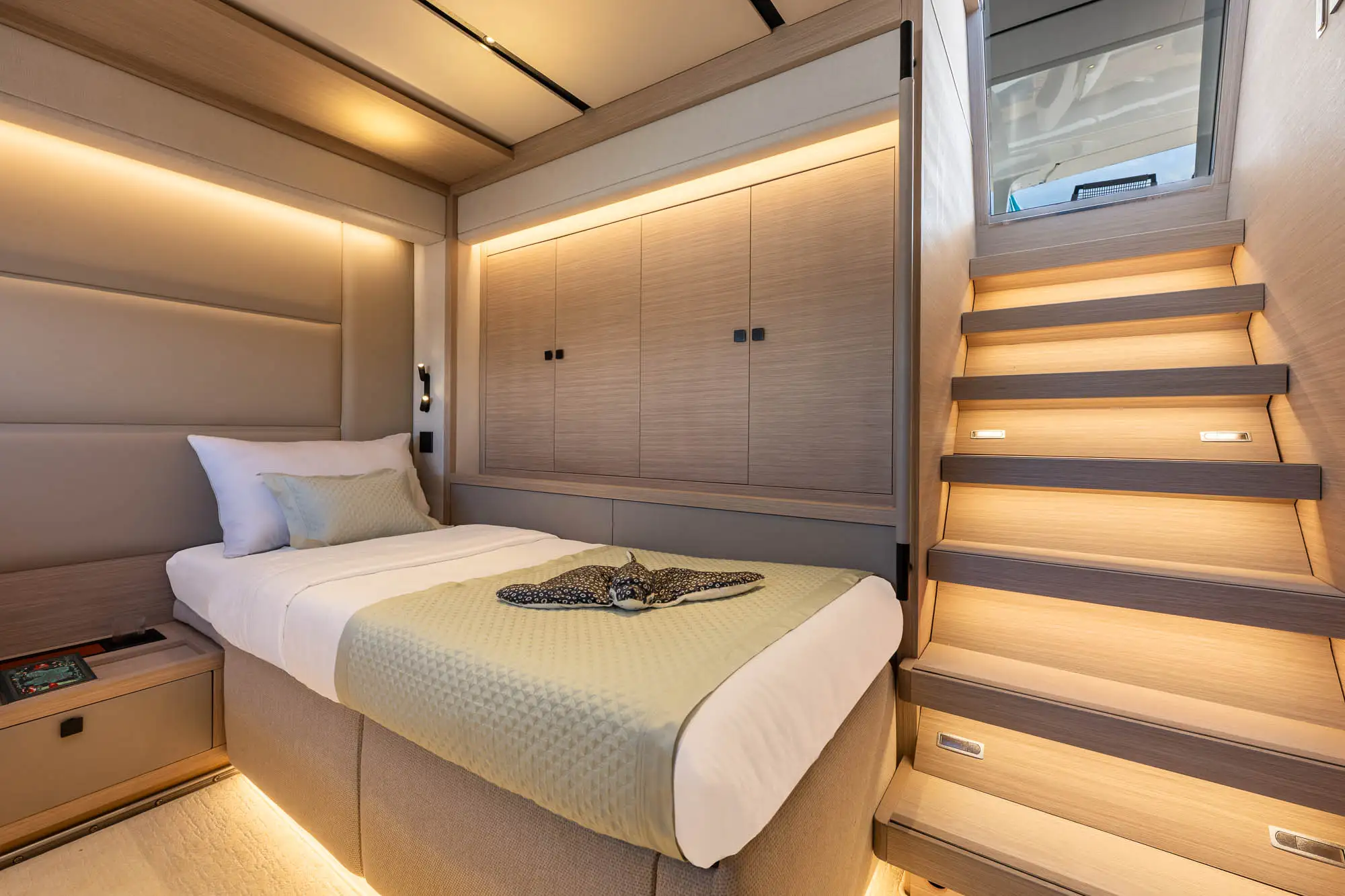 Desde el camarote del propietario, la cama king size con vistas al mar, la terraza privada y las zonas de relajación están diseñadas para ofrecerle un confort absoluto.